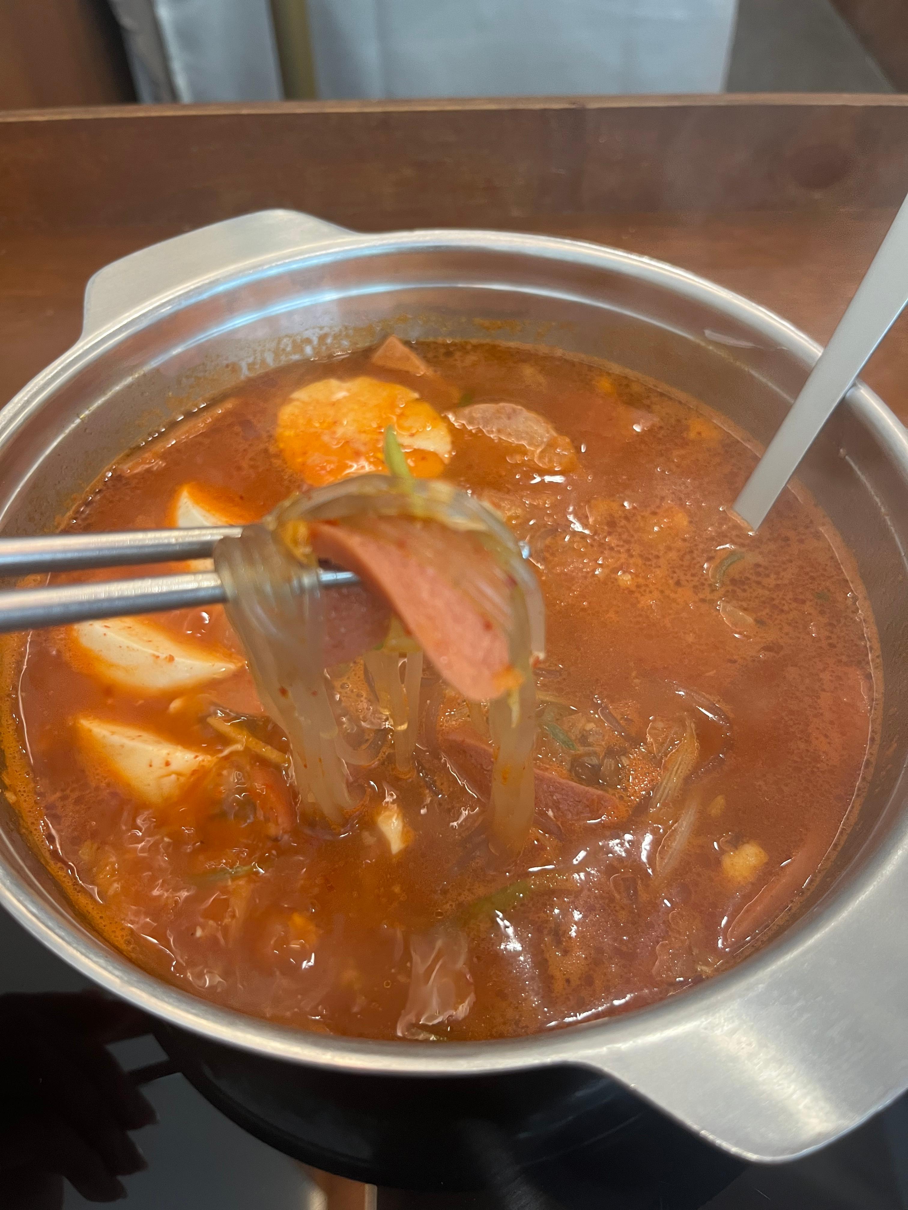 나는 만두사리 넣고, 인덕션 5단계로 끓인뒤 당면이 익으면 당면부터 먹기. 끓으면 좀 줄이고, 먹기 시작함.