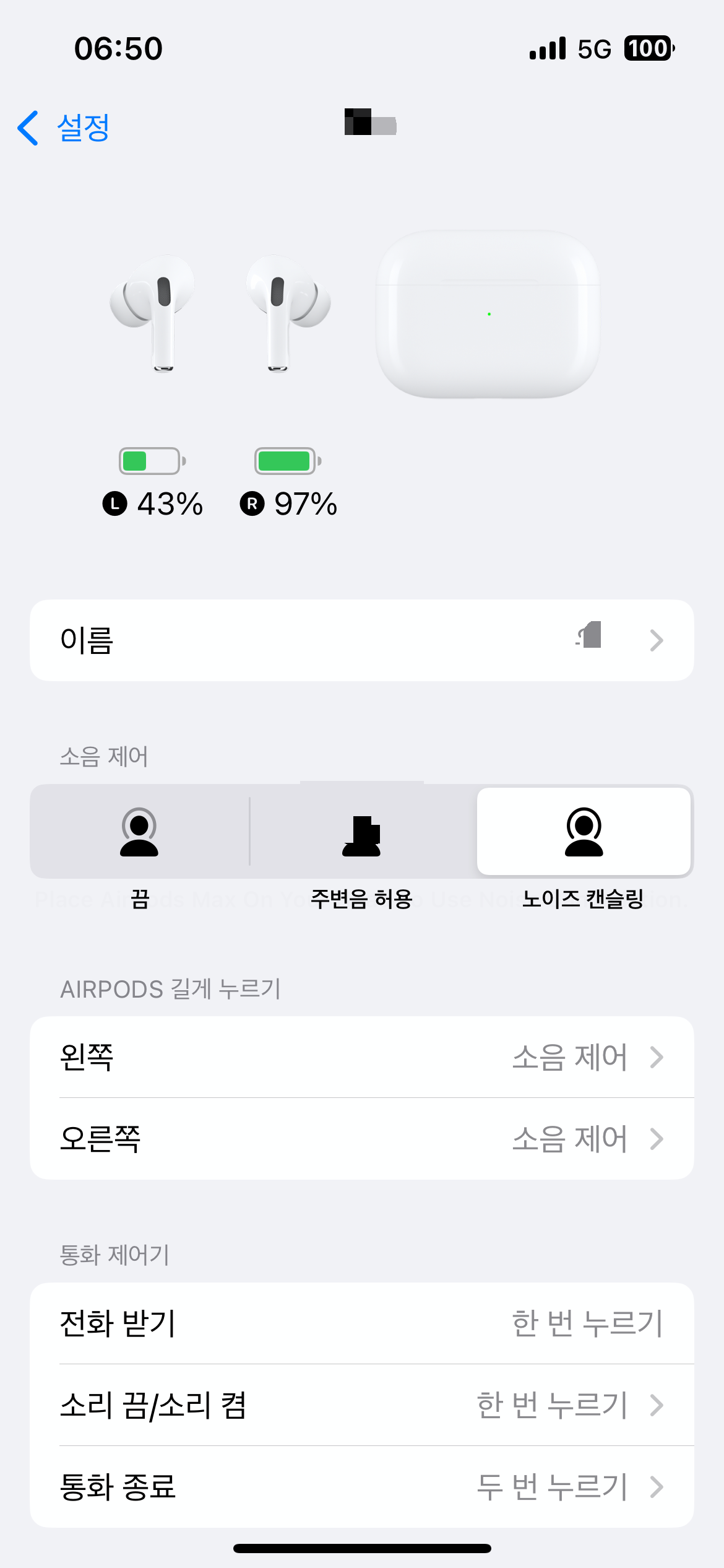이후 충전후 확인해 봤더니, 왼쪽이 인식이 안됨. 내 에어팟 삭제후 다시 등록해도 왼쪽은 인식하지 못해 사이트를 찾아봄.