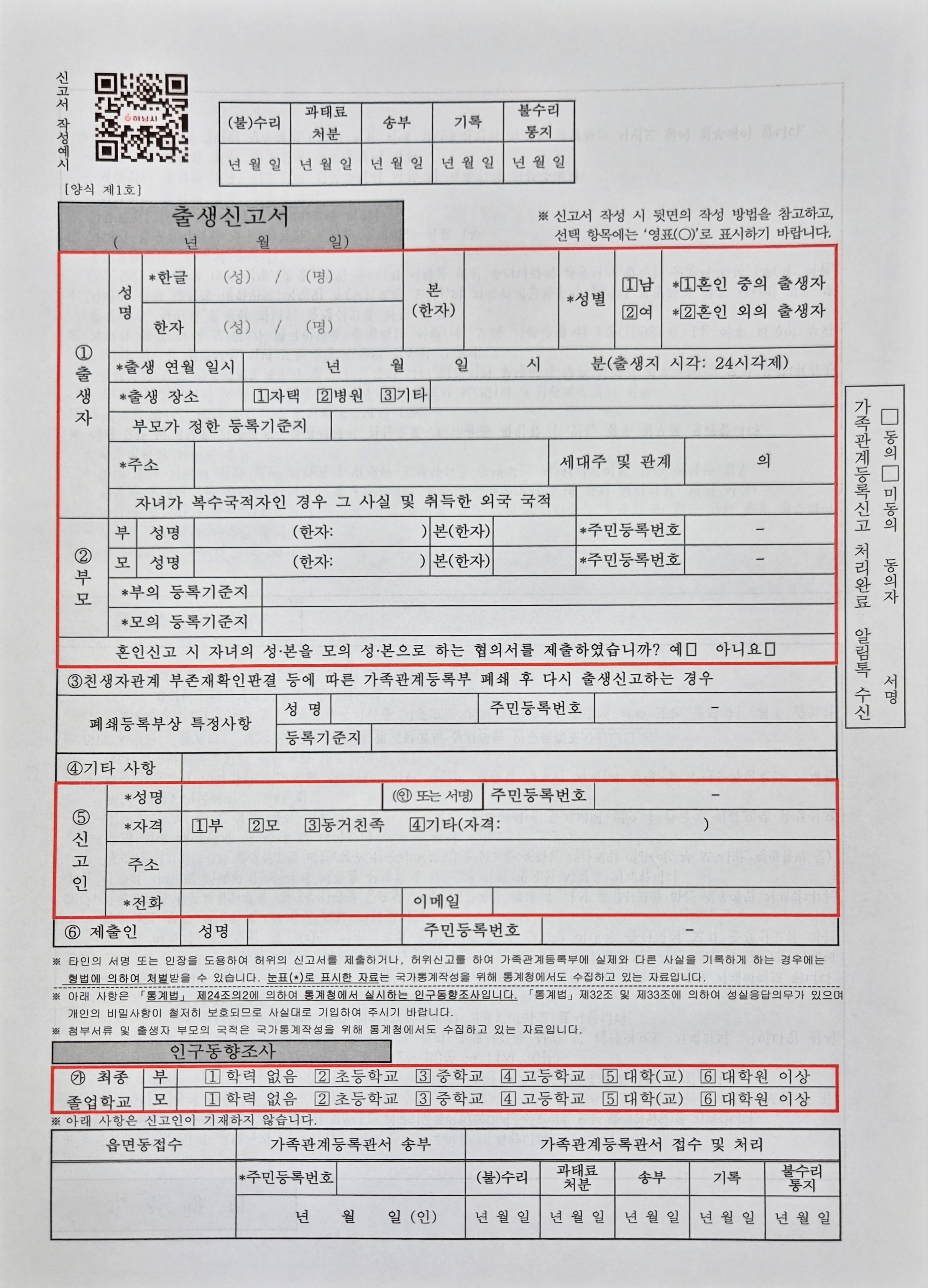 - 출생신고서 작성 (동사무소, 행정복지센터 / 민원창구)