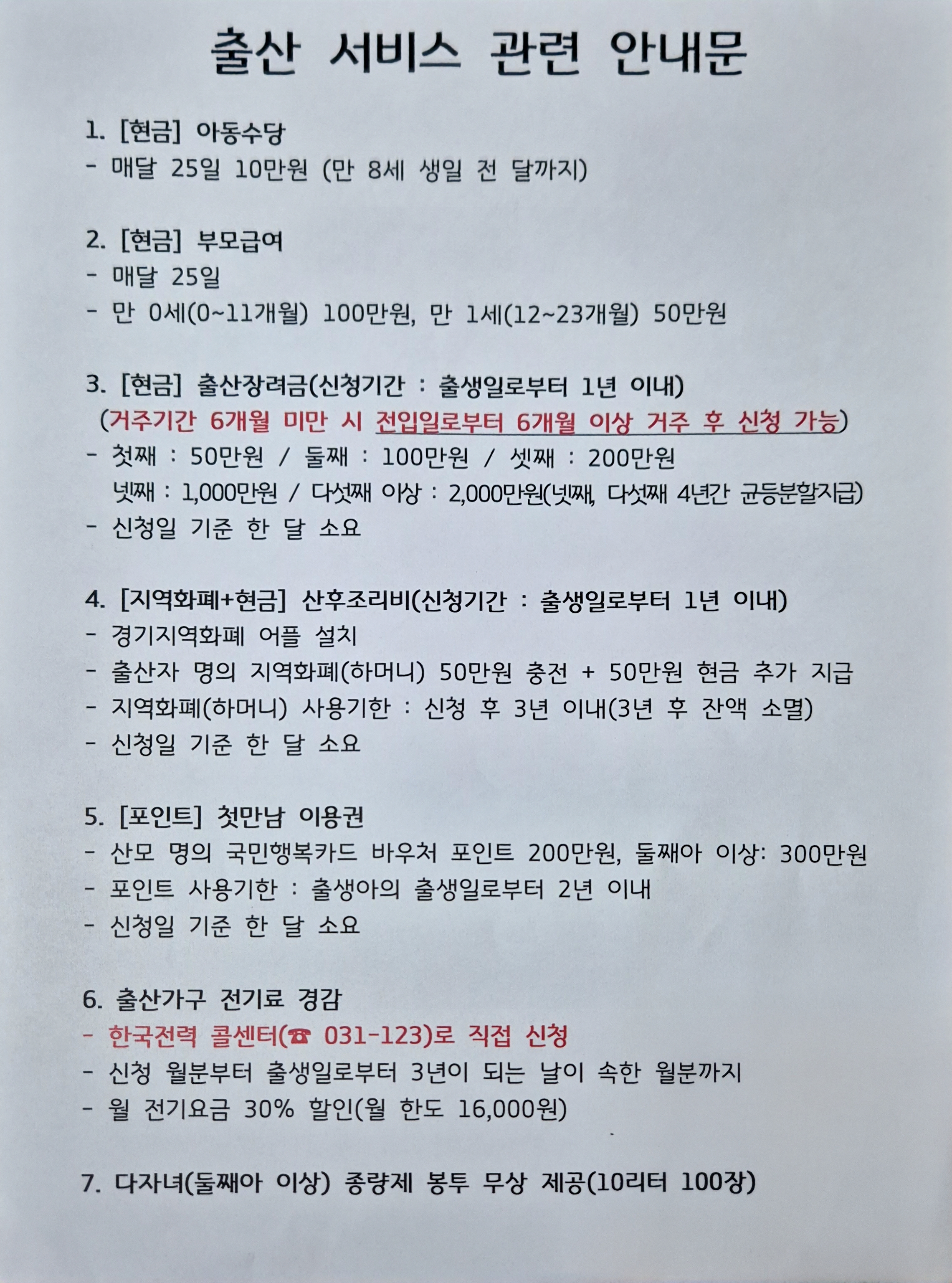 - 출산가구 전기료 경감신청 (한국전력 / 전화신청)